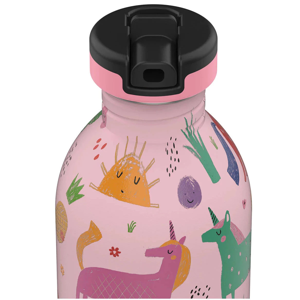Federleichte Trinkflasche aus Edelstahl von 24bottles. Hält garantiert dicht und schaut hübsch aus. Die Trinkflasche lässt sich mit dem praktischen Sportverschluß auch von Kindern leicht öffnen.